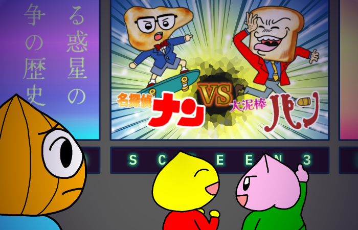 クリビーとモモビーは2人そろって『名探偵ナンVS. 大泥棒パン』というアニメ映画が見たいというので、