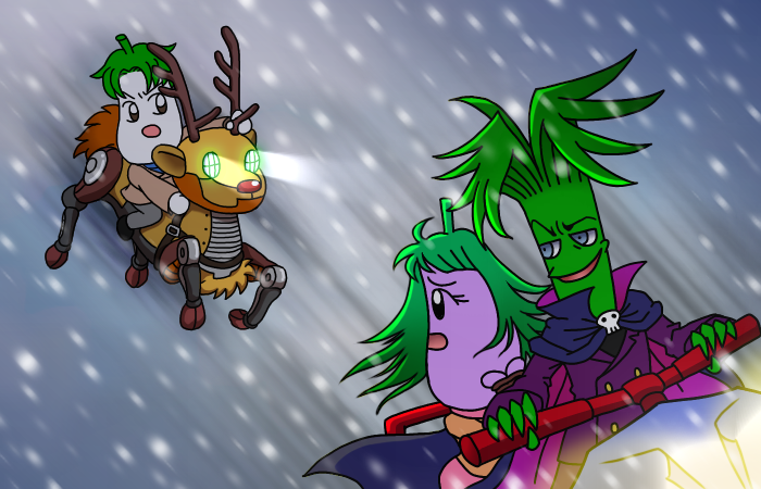 こうしてナスビー博士は、すでに見失う遠さの限界まで進んでいたシロナス先生のトナカイロボを、あっという間に追い抜きました。