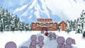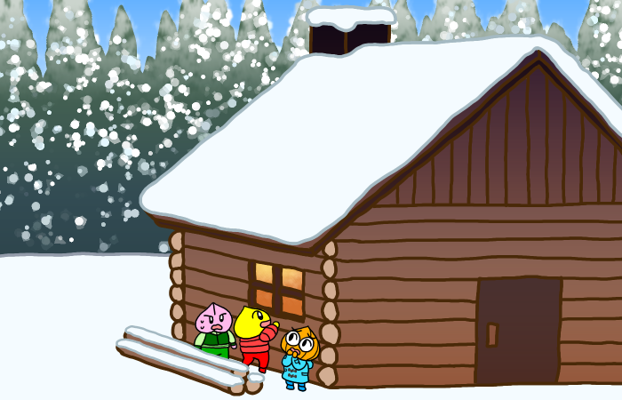 クリビー、モモビー、ネギーンの3人は、ロッジの外窓から中の様子をのぞきました。